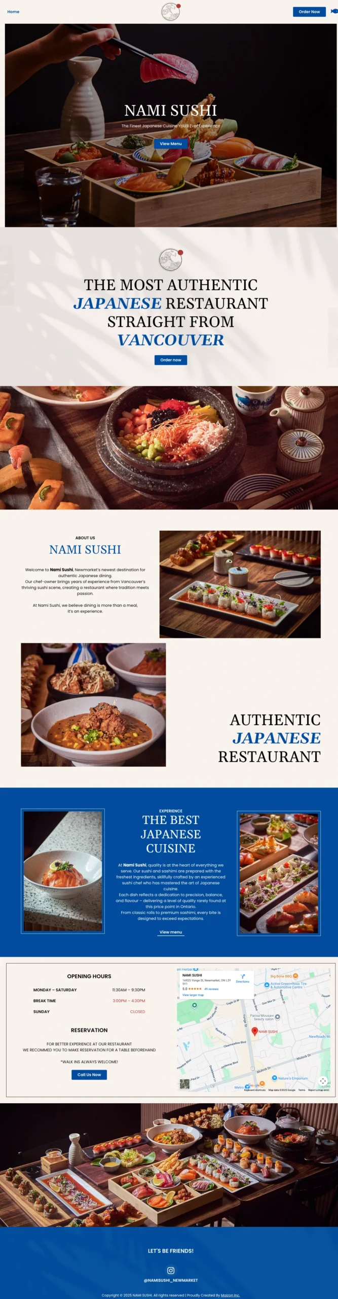 At Nami Sushi, we embrace the art of sushi with fresh ingredients and thoughtful roll-crafting in a warm, inviting atmosphere. Every dish is designed for both flavour and comfort so you can sit back, relax, and savour the moment.